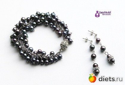«"Steel Rainbow". Комплект из черного жемчуга.»