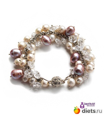 «"Искренняя нежность". Браслет из жемчуга и горного хрусталя.»