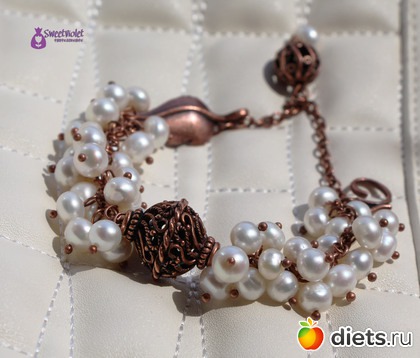 "Магия жемчуга". Браслет из меди и белых жемчужин.