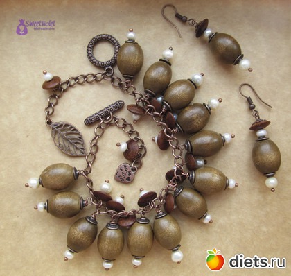 «Комплект "Верба" из натурального дерева и жемчуга.»