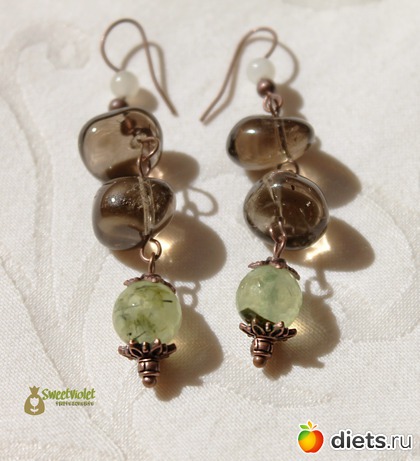 «Серьги "Волшебный сад" из пренита и раухтопаза.»