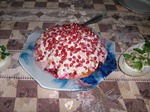 Картофель и свёклу натереть на тёрке, мясо – мелко порезать. На плоскую тарелку выложить слои в следующем порядке: