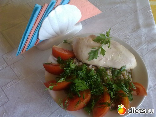 Грудка, гречка, помидор, зелень