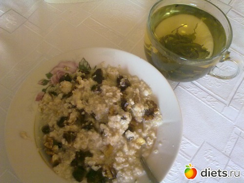 Овсянка на воде с финиками и грецкими орехами.
