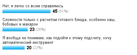 Сложности только с расчетом готового блюда, особенно каш, бобовых и макарон