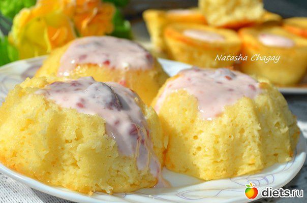 * Сырнички остудить, аккуратно достать из формочек, полить сметанным (или другим) соусом.