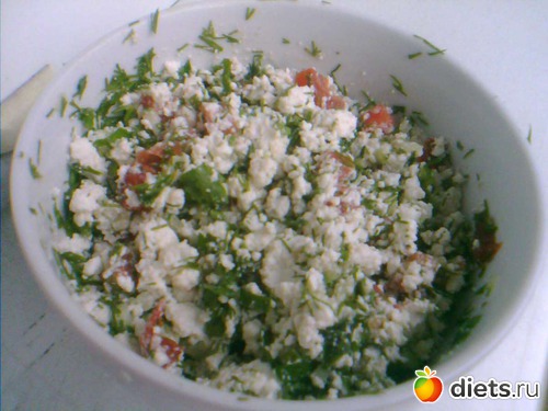 Завтрак - кроме традиционных апельсинового сока и кофе творог!% с овощами и зеленью: