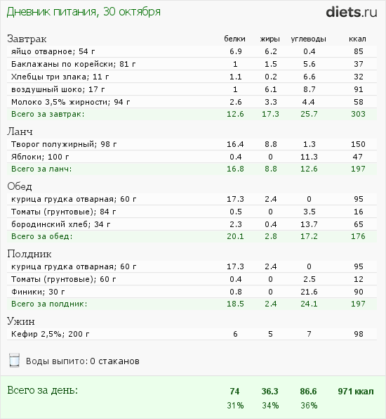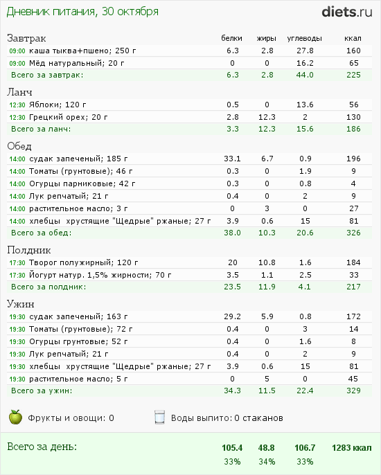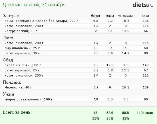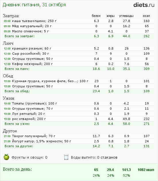 Вчерашний рацион мой: