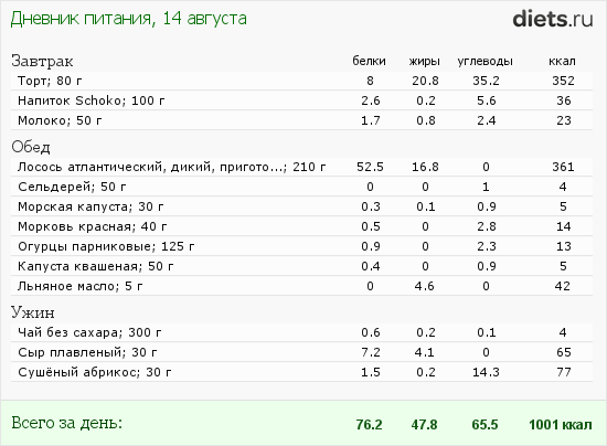 Моё питание за 14.08.013
