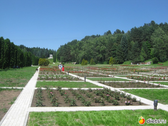 Здесь огромная площадь засаженная розами, разных сортов и оттенков, мы были ранним летом и там еще не все розы расцвели, вообще там божественно пахнет и красота-глаз не оторвать