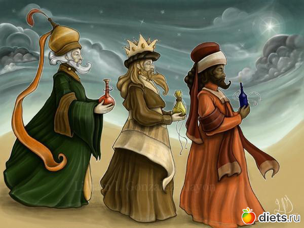 Женщина вышла из своего дома и увидела на уличном дворике троих стариков с длинными белыми бородами. Она не узнала их.