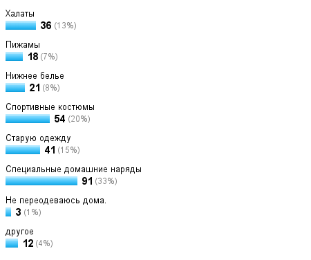 А я ношу махровые халаты, если холодно. Если гости из числа друзей или знакомых, то что-то ближе к первому варианту, только штанцы черные =)