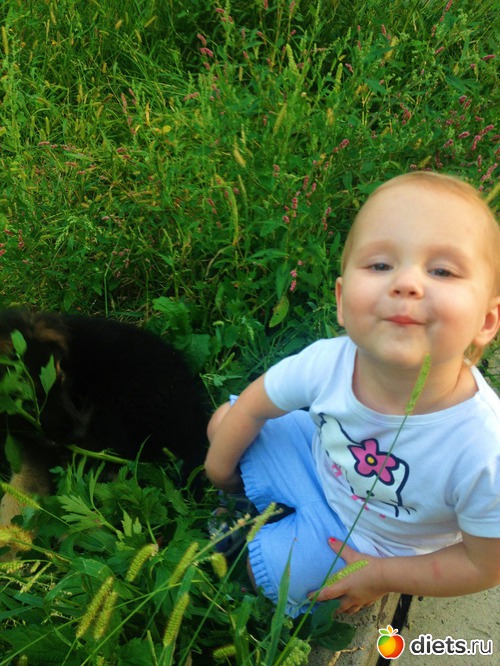 С девчёнками хотела сфоткать, не удаётся, он когда их видит-дуреет от радости, прыгает на них, а зубы то острые, делает больно. Еле вот это получилось.