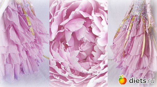 Юбка повторяющая лепестки пиона из легкого расшитого шелком и прозрачными паетками шифона.