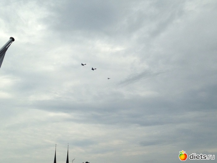 Потом мы вдруг увидели, как 2 самолета летят в унисон. Это было красиво, сразу вспомнила, как у нас на 9 Мая летят самолеты.