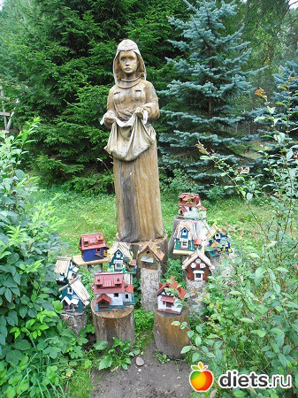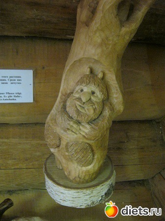 Деревянная скульптура начинается сразу у входа, одна интереснее другой. Челюсть отвисает, вспоминается детство.