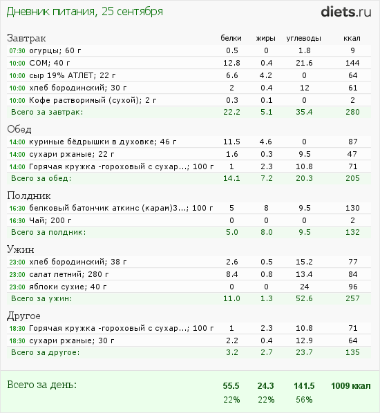а по второму меню: по Дюкану жирная рыба не только не запрещена,но и приветствуется,а основные жиры оттуда..... у меня были дни когда СЁМГА была 2-3 раза в день и вот там калорийность была поболее 2000ккал... и кстати когда была рыба я заметила,что не худела... а по остальным жирам в меню: я писала наспех,поэтому не перепроверяла БЖУ,а тут на сайте парадокс на парадоксе: в моём меню говядина и донская селёдка одной жирности-СМЕШНО!!! здесь вообще по мясу и рыбе часто бред написан.... и такое видела: жареная курица -130 ккал, варёная -150 ккал....это я к примеру,не помню какое мясо и калорийность,но ошибки налицо...