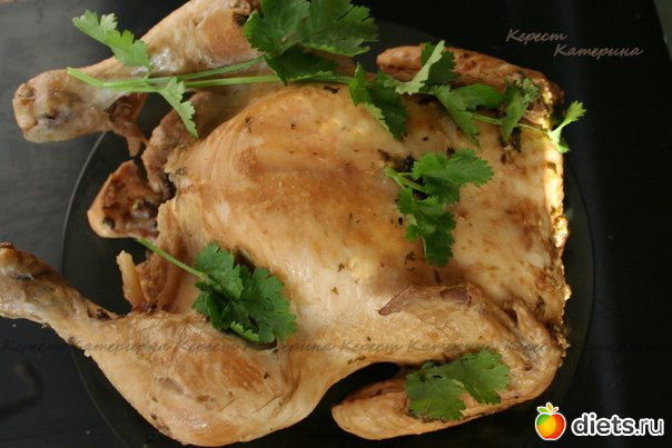 P.S. Курица получается, как будто, немного подкопченная. В оставшемся бульоне можно отварить рис или макароны, получатся золотистые и вкусные.