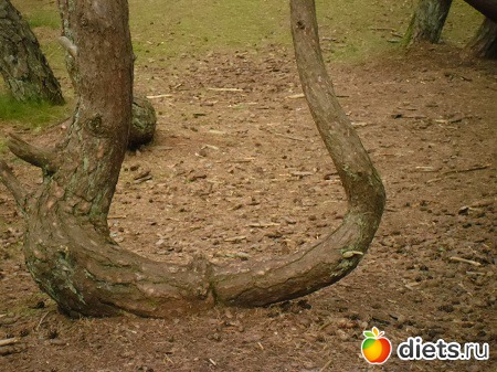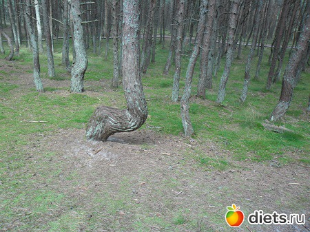 И буквально рядом абсолютно нормальные деревья. Предположений много самых разных, наиболее подходящее, на мой взгляд, это магнитная аномалия.