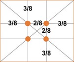 С давних пор многие утверждают, что объекты, содержащие «золотое сечение» воспринимаются обычно как наиболее гармоничные. Что же такое «золотое сечение»? Это та же пропорция, только теперь мы делим наш снимок таким образом, как показано на рисунке справа.