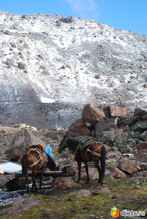 Дошла до палаток, собрала свои вещи, побрела вниз с тяжелым рюкзаком. Путь вниз от 5200 до канатки составил около 4-5 часов.