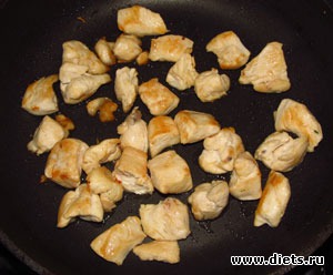 Куриное филе нарезать кубиками примерно 2Х2 см.
