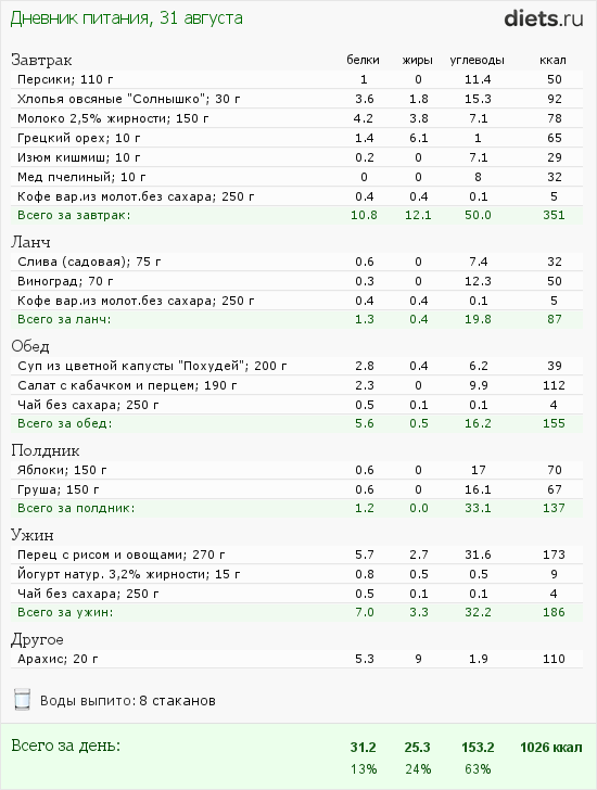 У меня сегодня были чисто овощи и фрукты и немного орешков