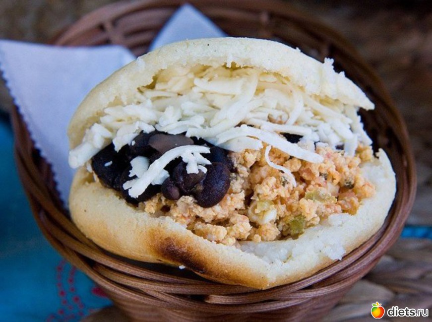 Арепа: сэндвич из толстого кукурузного хлеба, в который добавляется свинина, сыр и авокадо.