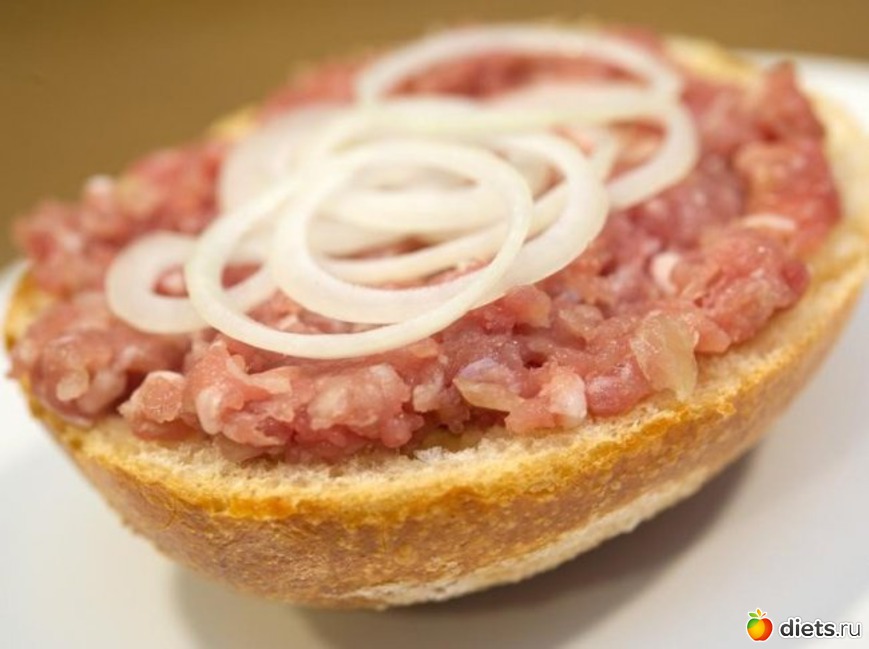 Меттбрётхен: булочка с луком и сырым свиным фаршем.
