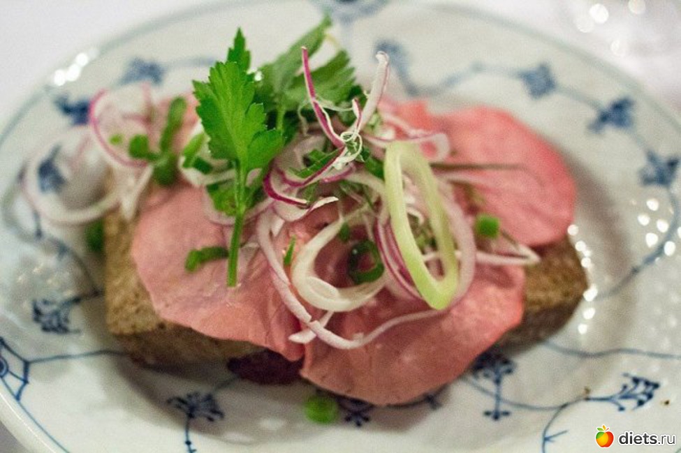 Дирлэгенс натмад ("ночная закуска ветеринара"): односторонний бутерброд с заливным, солёной говядиной и паштетом.
