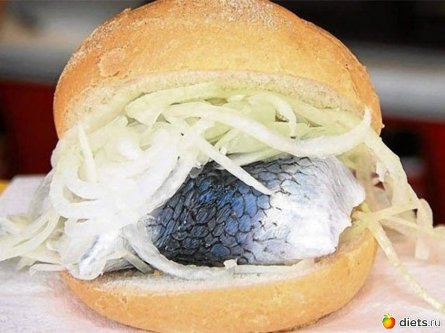Фишбрётхен: хрустящая булочка с рыбой (чаще всего это маринованная сельдь) и сырым луком. Как правило, в рыбу кладут какую-нибудь начинку.