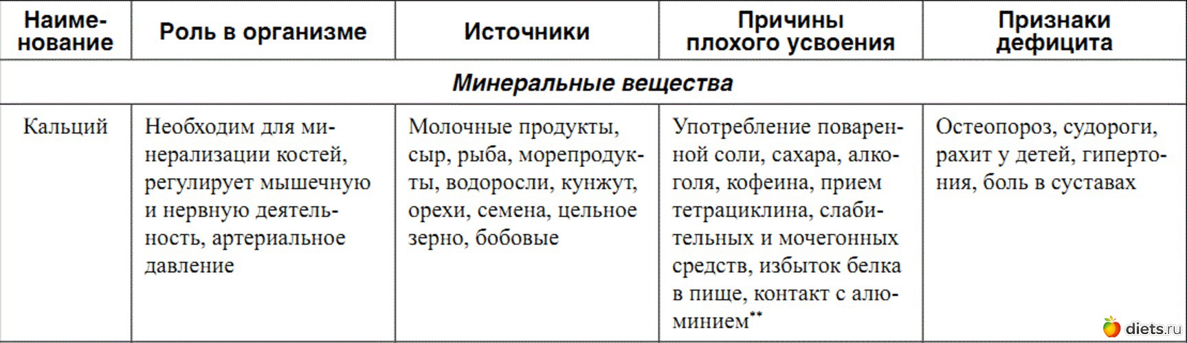 Витамин Д увеличивает всасывание ионов кальция в тонком кишечнике, и его недостаток может привести к дефициту минерала даже при достаточном его содержании в потребляемой пище.
