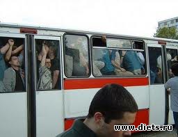 Едет автобус. За ним бежит человек. Пассажиры угорают от смеха.