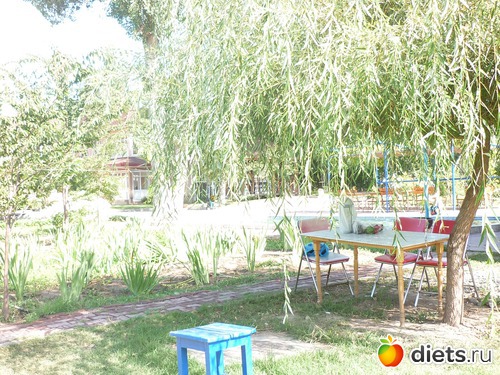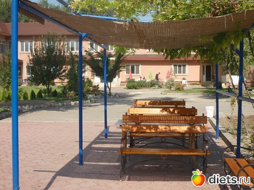 есть под навесом столики где можно перекусить))...обычно мы берем с собой чай, овощи, варенные яйца, печеньки...вообщем легкий перекус)))