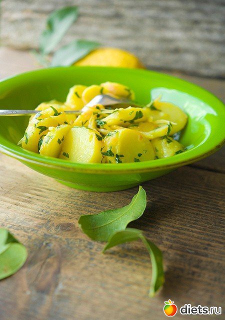 Сразу же заправить готовым соусом, закрыть кастрюлю крышкой и как следует встряхнуть. Оставить картофель на 20 минут.