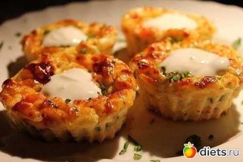 5. Центр запеканок "сядет" и в него капнуть 1 чайную ложку сметаны. Украсить рубленной зеленью.