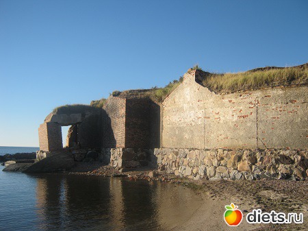 Это развалины шведской крепости. Когда была война со шведами, это во времена Петра I было. Помните - окно в Европу наши прорубали? Шведские войска здесь базировались и на Россию нападали. И шведам хана, и крепости их тоже.