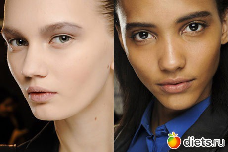 Например, выделять карандашом или тенями на тон темнее основного пигмента волосков. Если у вас широкие брови, старайтесь, чтобы рельеф кожи всегда был идеален, подчеркивайте глаза монохромными тенями, а губы – блеском или помадой с эффектом сияния, как у моделей Fendi, Chanel, Etro, Proenza Schouler.