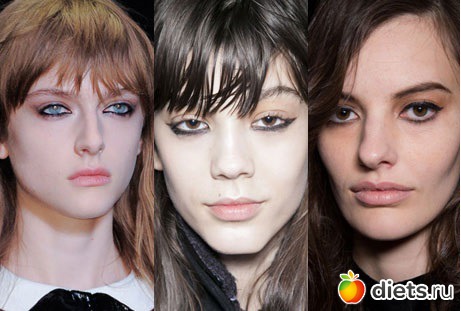 Макияж smoky eyes – неувядающий тренд с 90-х годов прошлого века. Мейк-ап в стиле «я – королева драмы», когда дымчатые тени растушевывают до линии бровей, предлагают визажисты John Galliano, Giorgio Armani, Lanvin, Roberto Cavalli, Donna Karan, Jason Wu, Rag & Bone, Michael Kors, Thakoon. Smoky eyes можно создавать с использованием коричневых, оливковых, серебристых, классических черных цветов и оттенков металлик.