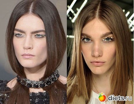 Забегая вперед, заметим, что макияж с использованием серебра – идеальный вариант для создания образа Снежной Королевы в новогоднюю ночь. Идею подали визажисты Dior, украсившие веки моделей фигурными серебристыми стрелками, и создатели макияжа показа Chanel, осыпавшие веки и ресницы девушек специальными серебристыми блестками для глаз. Стиль металлик – драгоценное решение для главного праздника в году.