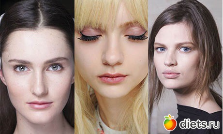Модели Altuzarra, Rodarte, Donna Karan, Saint Laurent, Kenzo демонстрируют, как такой макияж подчеркивает в девушках беззащитность и невинность.