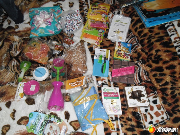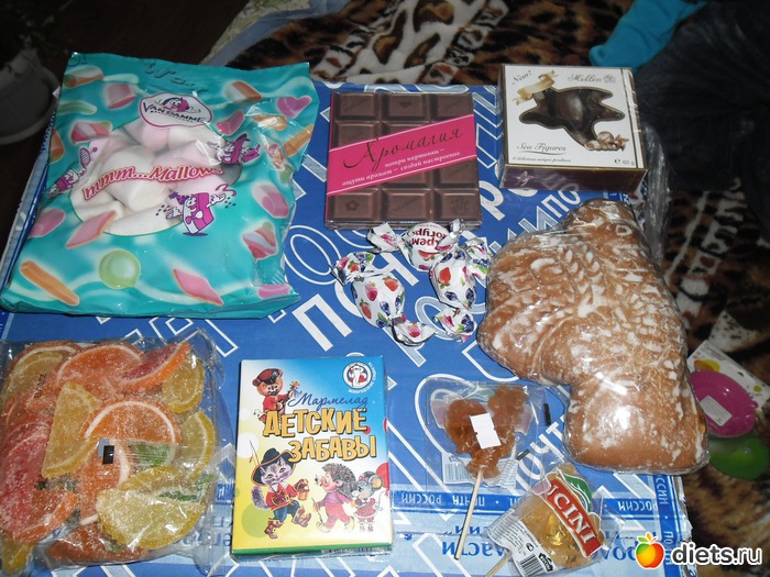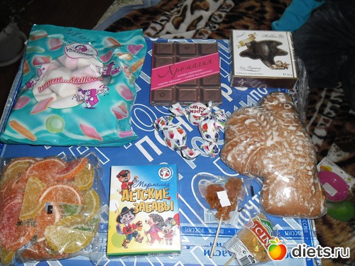 Тут и конфеты, и маршмелоу, и мармелад, и шоколад, и пряник печатный и петушки на палочке...