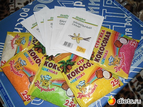 Еще кулинарных вкусняшек - ванильный сахар и разноцветная кокосовая стружка