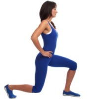 Упражнение направлено на переднюю часть бедра. Если вы хотите выполнить это упражнение для похудения в бедрах более эффективно, вы можете взять в руки отягощения. Это могут быть гантели, да впрочем, все, что вы обязательно найдете у себя дома – банки или бутылки, которые можно заполнить водой или песком. Чтобы правильно делать выпады, поставьте ноги на ширину плеч. Теперь сделайте выпад правой ногой перед собой, держите спину прямо и опустите туловище вниз, сгибая колено, пока левое колено не коснется пола. Удерживайте такую позицию несколько секунд и вернитесь в исходное положение. Повторите упражнение от 10 до 12 раз, прежде чем поменять на другую ногу.