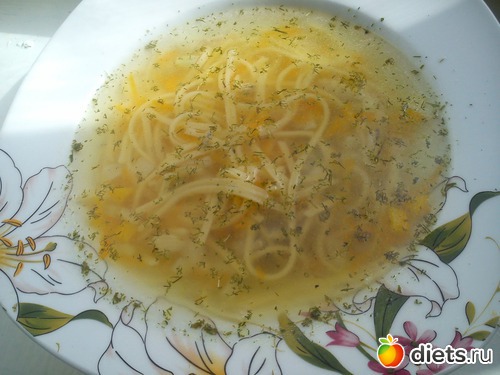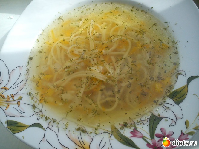 Куриный суп с лапшой Думаю рецепт писать не надо, все легко. Кура(точнее ее маленькая часть))), лук, морковь, перчик болгарский, лапша. Он кстати легенький получается, так что бутерброды в помощь супругу