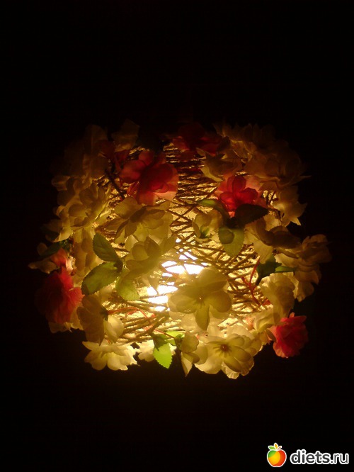 Муж тащил стремянку с балкона и задел мой дешевенький, но милый абажур... Это, если честно, было весной... Все это время на потолке висела гордая экономичная лампочка.