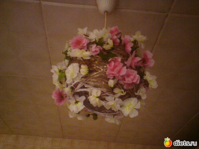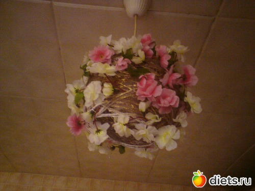 Муж тащил стремянку с балкона и задел мой дешевенький, но милый абажур... Это, если честно, было весной... Все это время на потолке висела гордая экономичная лампочка.