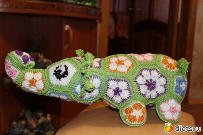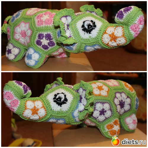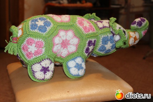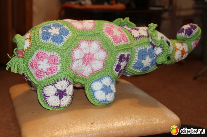 Сейчас собаку вяжу,ещё есть жираф,черепаха,бабочка, а сегодня я носорога увидела-Красавец