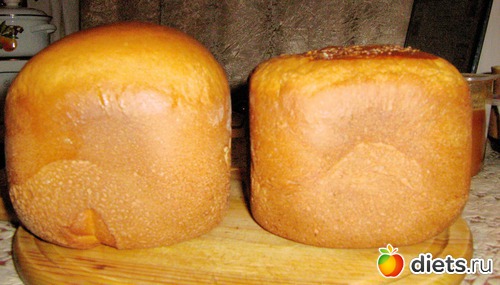 Вычитала тут, при выпечке пшеничного хлеба чуть-чуть (на 10 мл.) убавить кол-во жидкости, а вот количество дрожжей чуток увеличить. результат - на фото)) Хотя на вкус это никак не повлияло)))