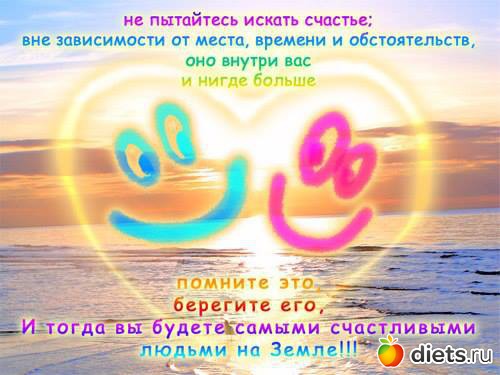 а вот еще, фраза, кстати, очень даже правильная. Поэтому считаю что не стоит гнаться за химерами и мечтами, надо уметь радоваться и быть счастливым тем что имеешь, но это не значит что не надо добиваться от жизни большего. Ведь если наша мечта исполнится, нашему счастью не будет границ, а тот кто не умеет радоваться жизни, он и этому не обрадуется, ему жизнь омрачит что-то другое.